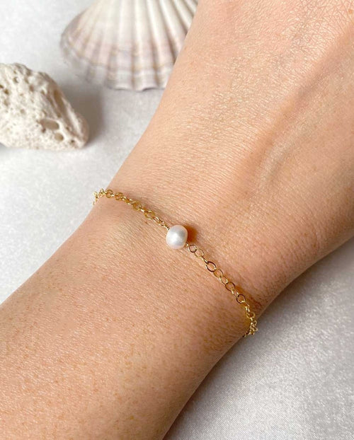 A fine figaro chain bracelet with our dainty Crystal Duo Charm.