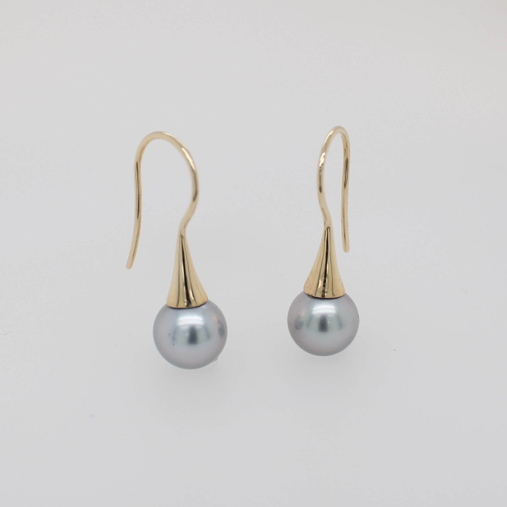A pair of modern, organic pearl drop earrings. This design features our Molten Circle Stud in its roughly formed beauty, and a natural dew drop shaped freshwater pearl suspended from it.
