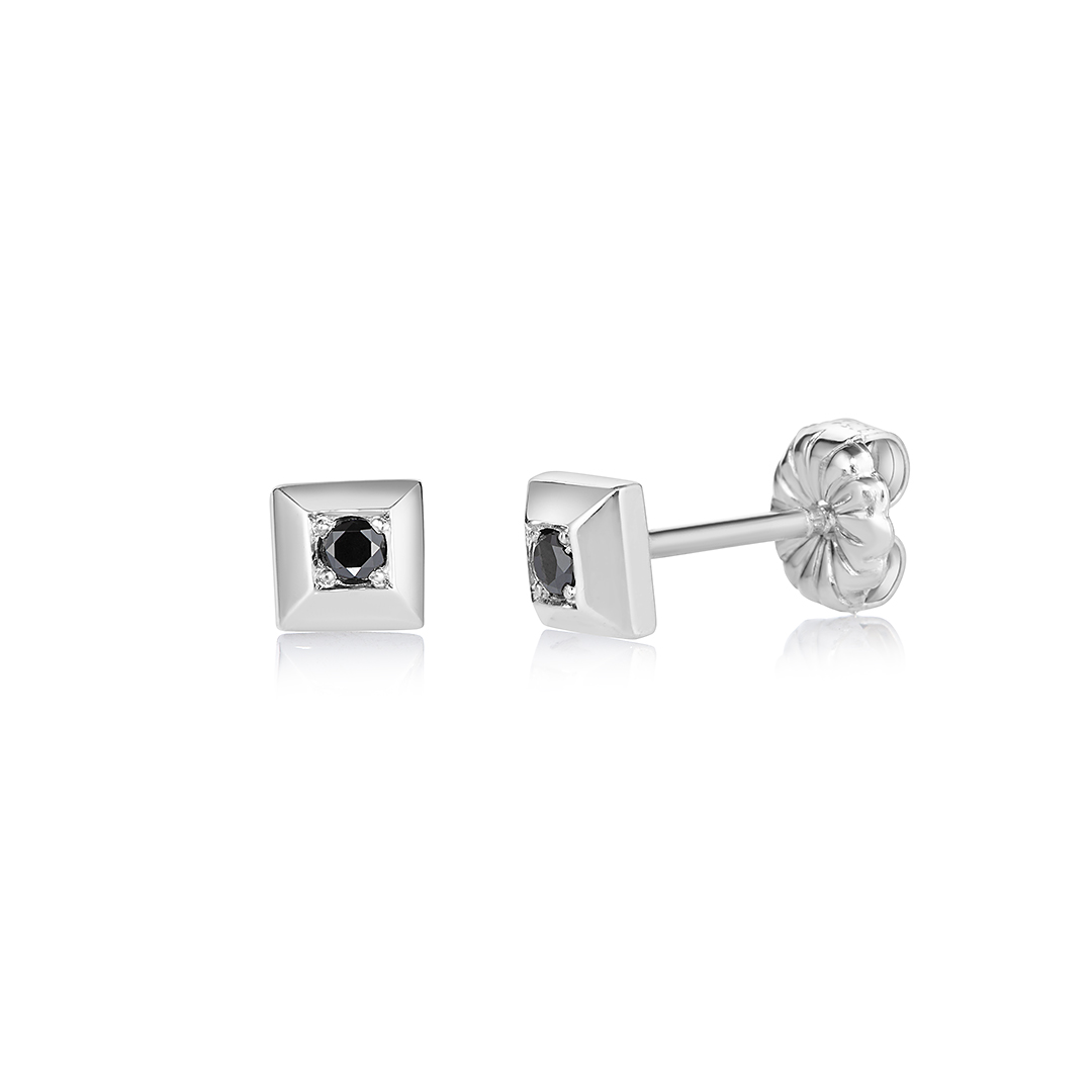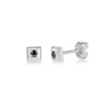 Sterling silver black diamond set earrings. 4.2mm square with bezelled edges centre set with a 1.8mm black diamond