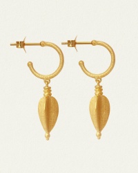 Shine brightly with our Alena Earrings. Translated from its ancient Grecian origins, Alena means ‘bright, shining one’. A message conveyed by the warmth of the hand-brushed 18k Gold Vermeil and enhanced by the delicate yet vivacious swaying of the teardrop pendant suspended from a half hoop earring.