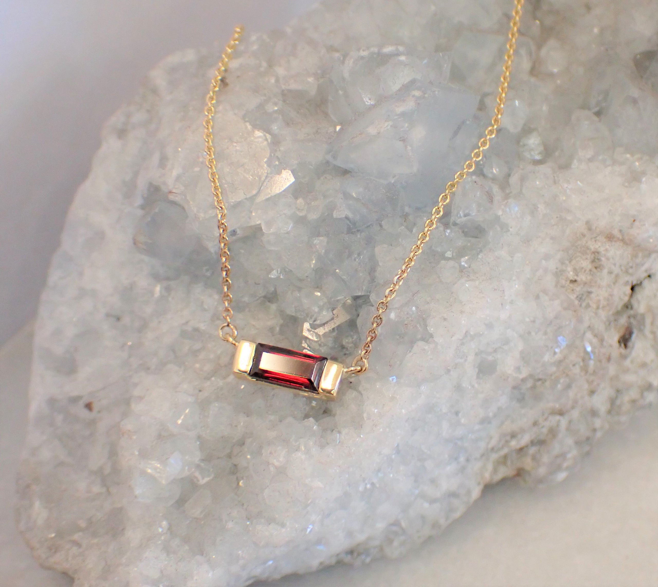 The Argos Necklace is a recycled sterling silver pendant necklace inspired by ancient libation bowls, used for offerings to the gods or ancestors. This dainty ruby necklace features a round pendant suspended from a fine curb chain.