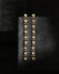 These diamond earrings make a bold statement, featuring a fusion of textured coin elements, connected by our signature Temple of the Sun rivet.