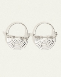 Hoop earrings were popular within the ancient Greek culture, dating back to the 5th century BC. The Baye Earrings, in cross-brushed polished Ethical Sterling Silver, have seven hand-shaped semi-circles that hang symmetrically and ripple in harmony as they move.
