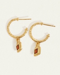Vibrant drop earrings with an ancient aesthetic, the Cilla Earrings are crafted from 18k gold vermeil. Textural hoops elegantly suspend garnet drops with delicate gold bead detailing.
