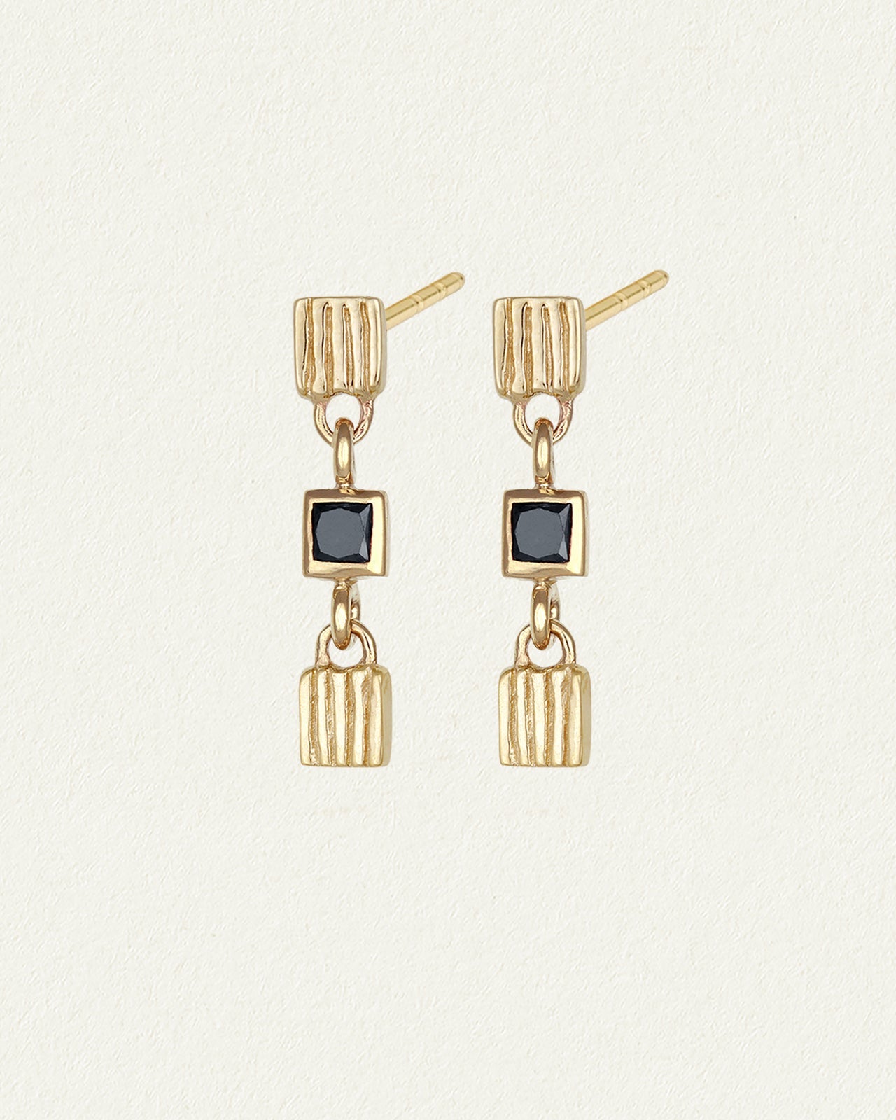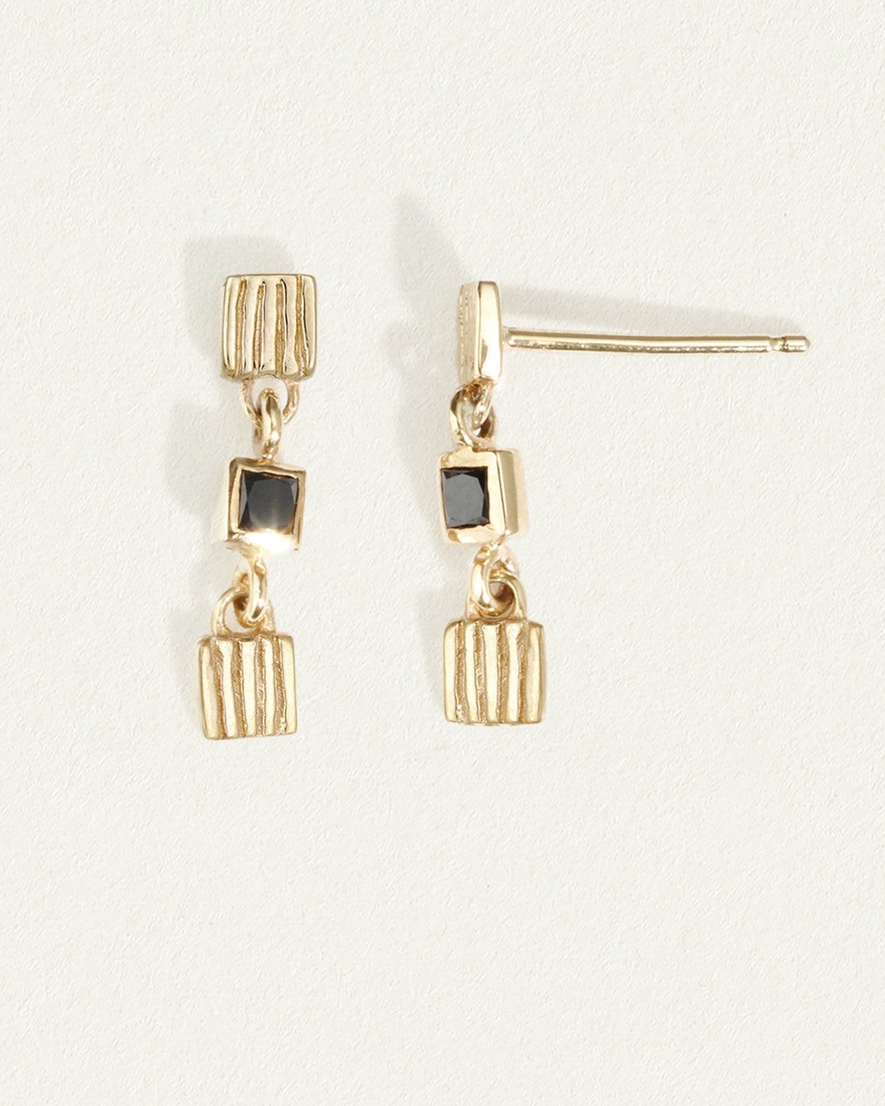The Dell Earrings in 9K Solid Gold with Black Diamonds are a delicate stud earring with hand-carved, textural detailing. Black Diamonds are thought to promote inner strength, bestowing balance and passion upon the wearer.