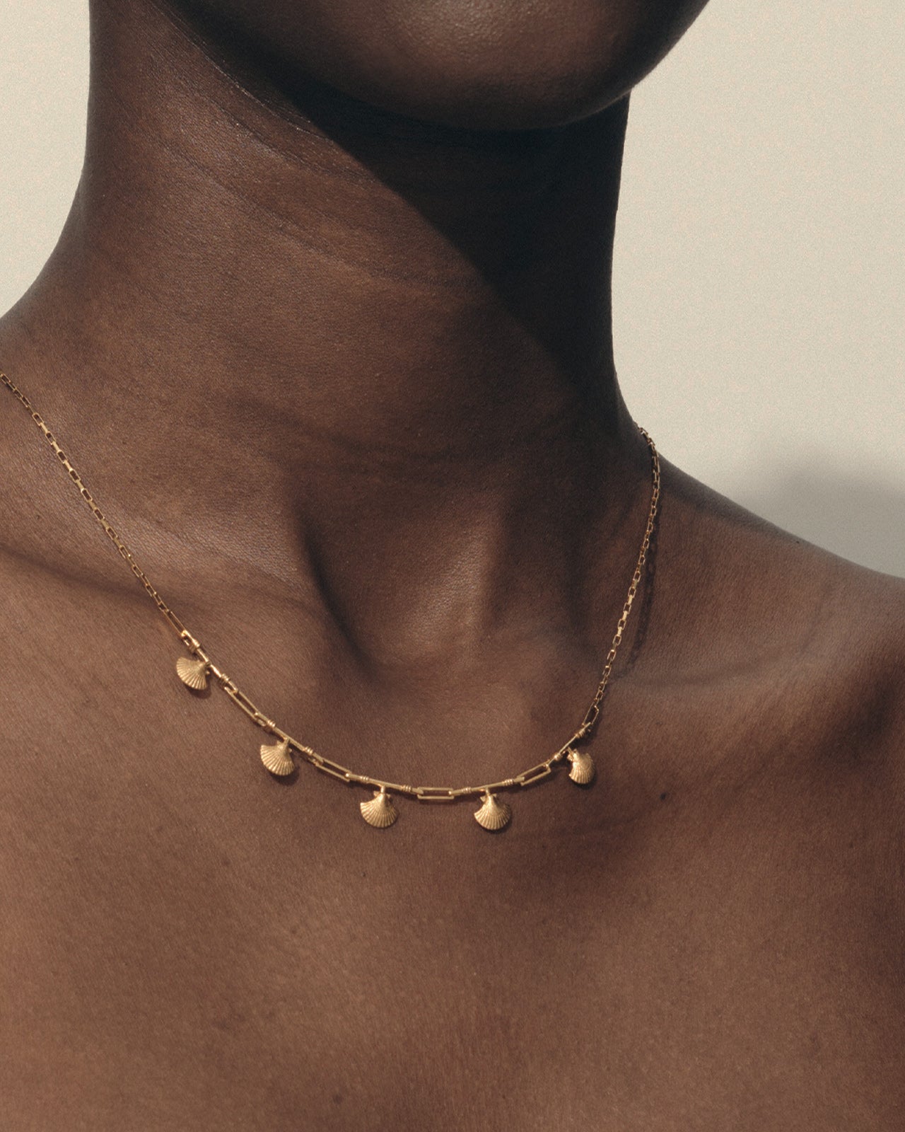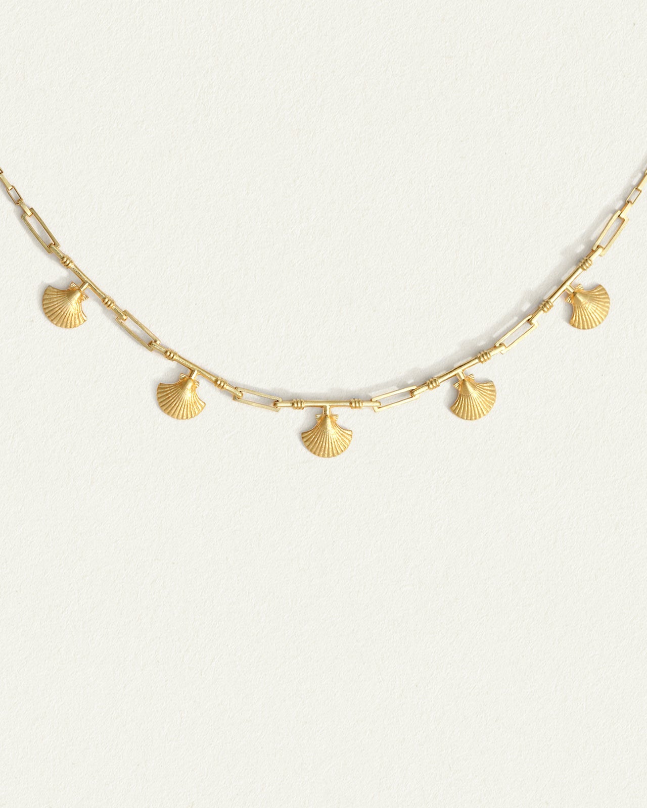 The Eleni Necklace is a divine evolution of the shell necklace, inspired by Aphrodite herself.