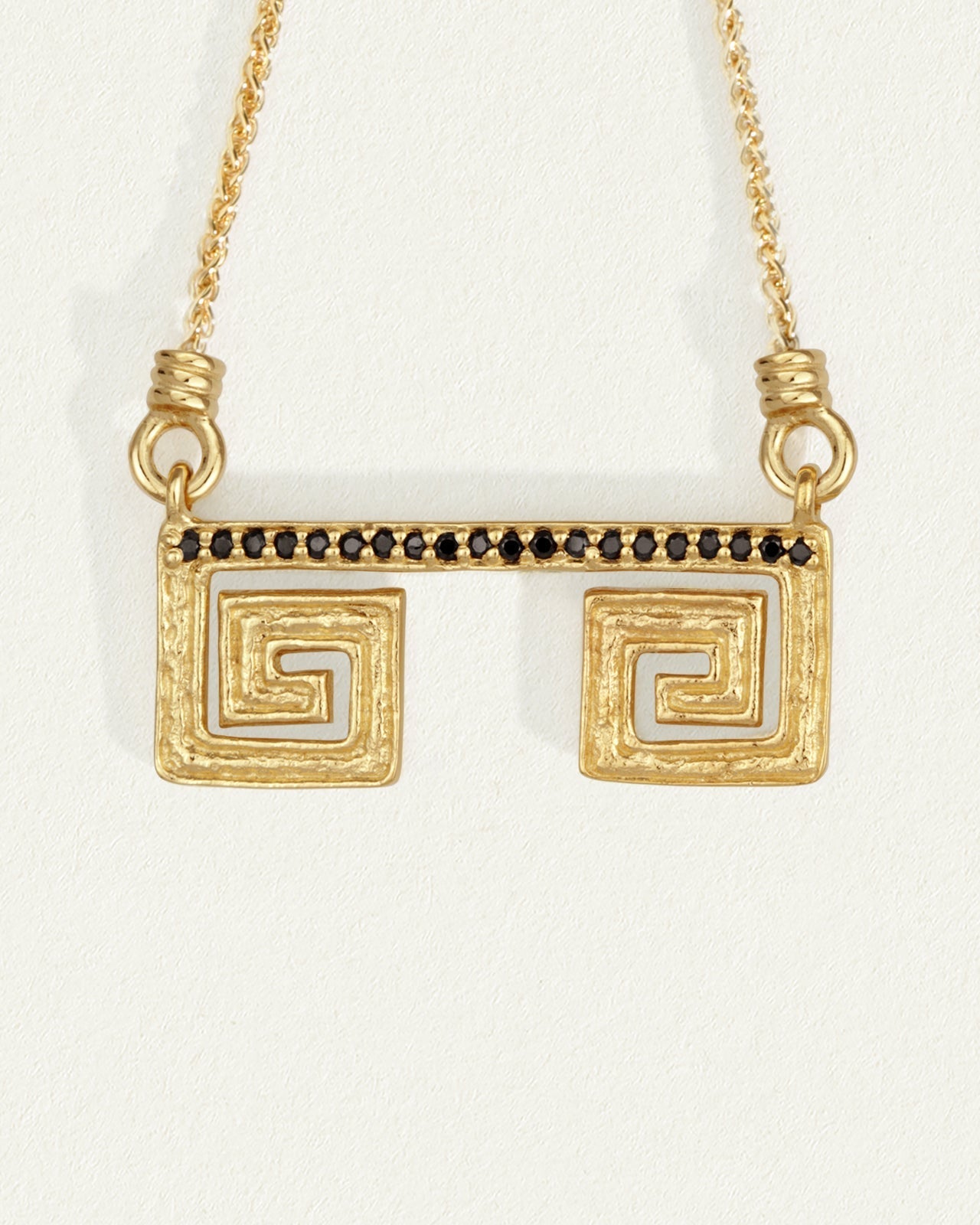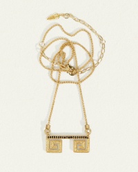 An 18k gold vermeil bar necklace with ancient roots, the Greca Pave Necklace features a fixed pendant suspended from a braided wheat chain.