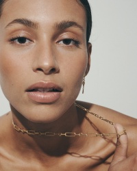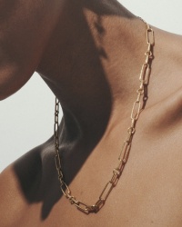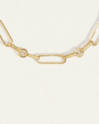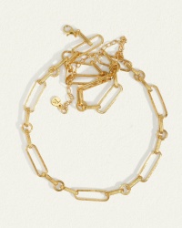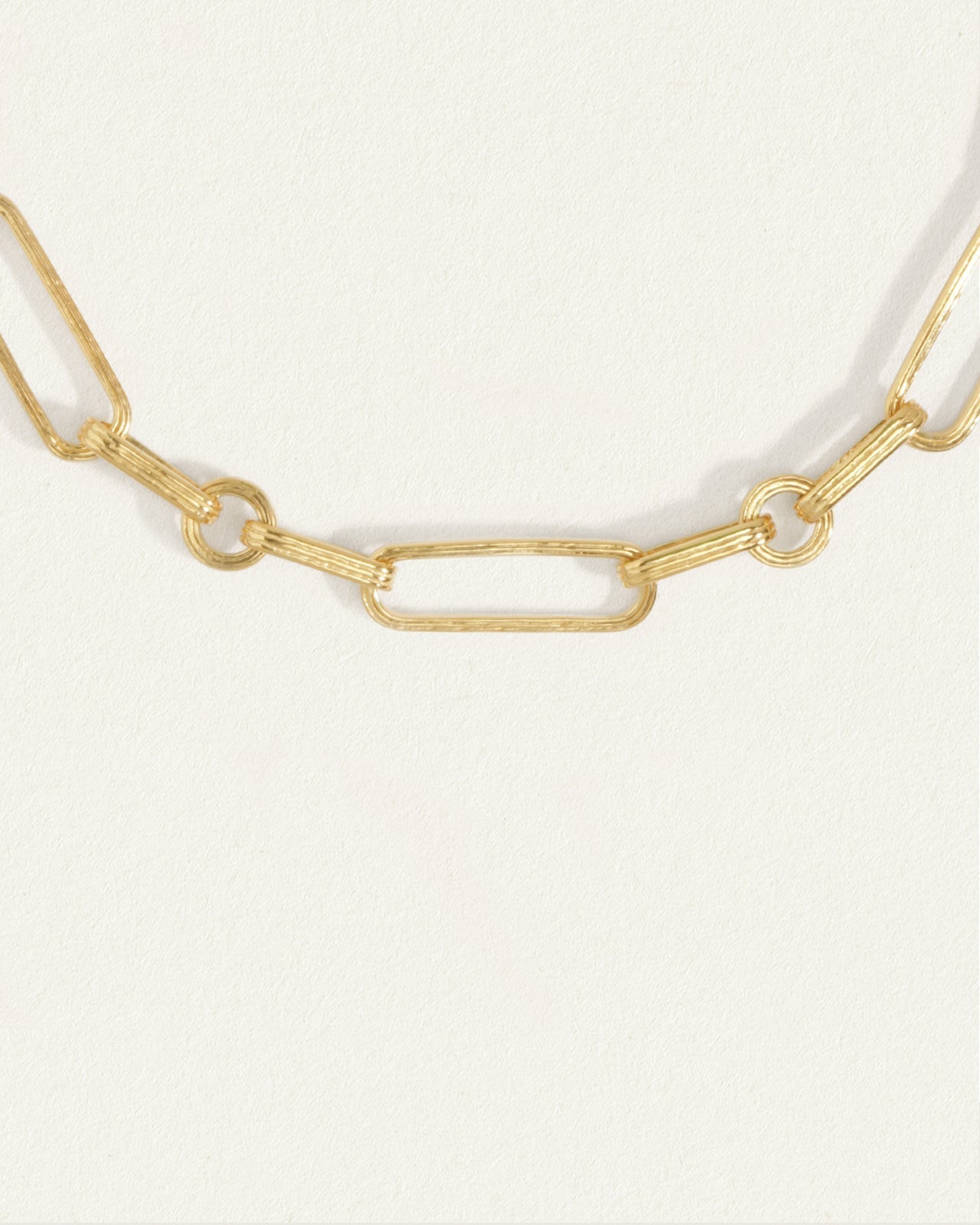 The Kyria Necklace is a bold statement chain crafted from handmade links of textural 18k Gold Vermeil. These links serve as a warm embrace, symbolising strength, and connection. The Kyria Necklace is a regal expression of feminine authority.