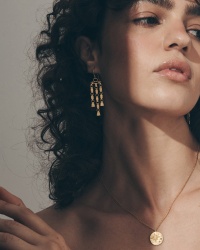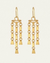 The Sharni Earrings, in 18K Gold Vermeil, feature three panels of handmade chain work, reminiscent of Ancient Greek jewellery discovered upon the isle of Crete. These refined earrings embody the classic Temple of the Sun look.