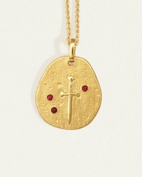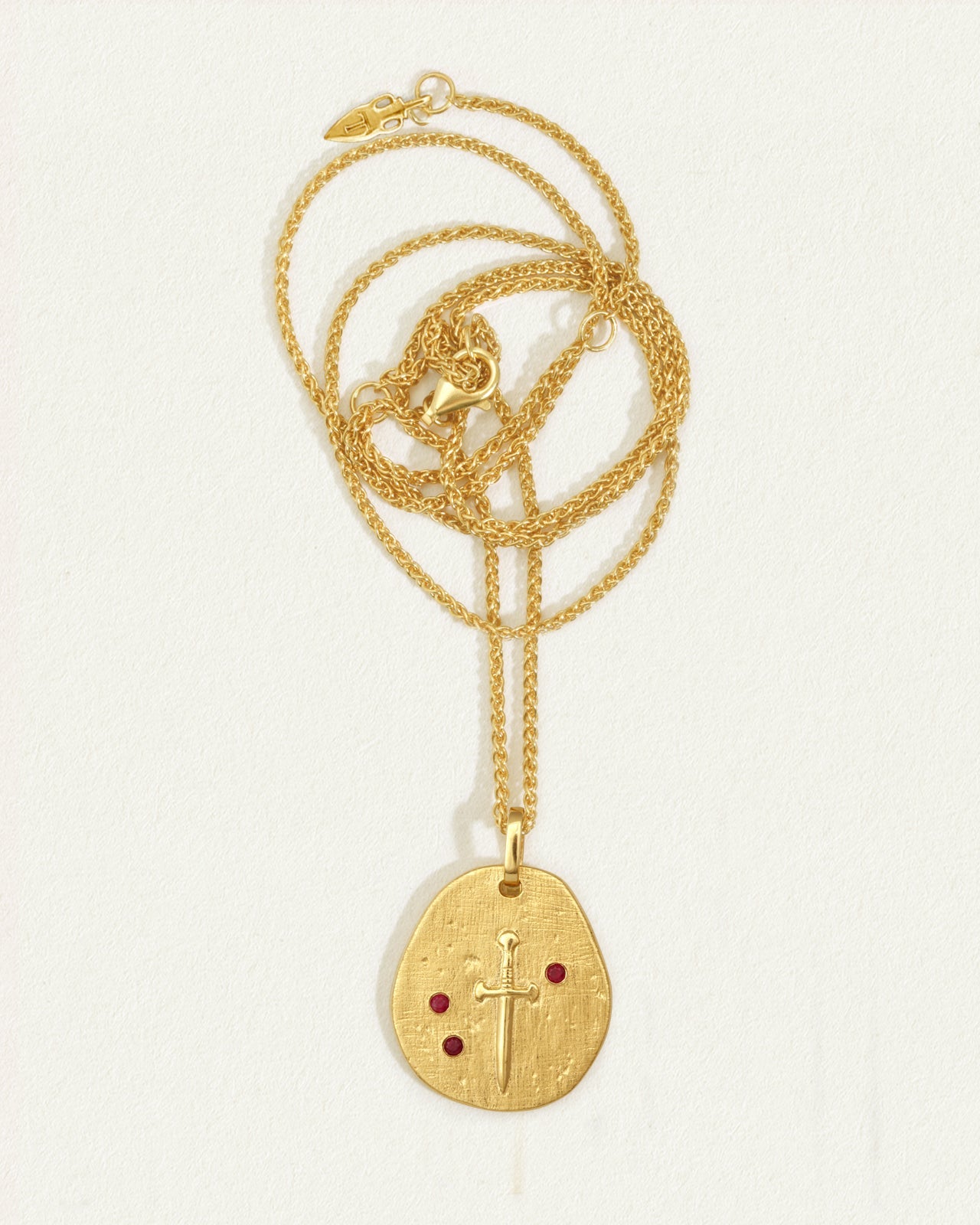 A unisex ruby necklace with organic allure, the Valor Necklace features an 18k gold vermeil coin pendant, suspended from an intricately braided wheat chain.