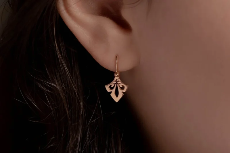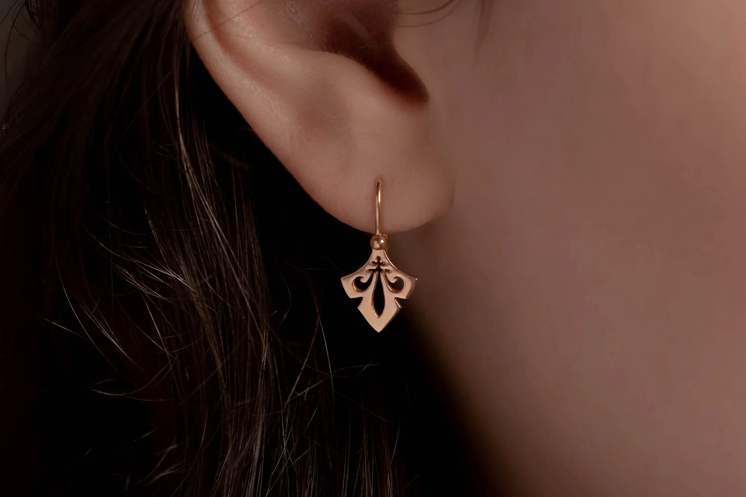 Part of the Marginalia collection, these earrings have been inspired by the illustrated margins of medieval manuscripts. Victoria has drawn from the ivy leaves, fleur de lis, scrolls and banners to bring a new life to ancient motifs.