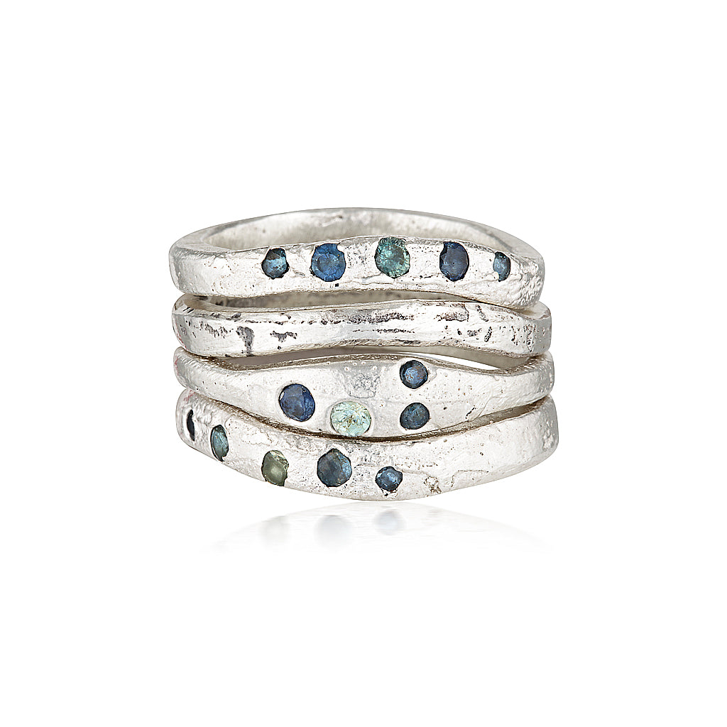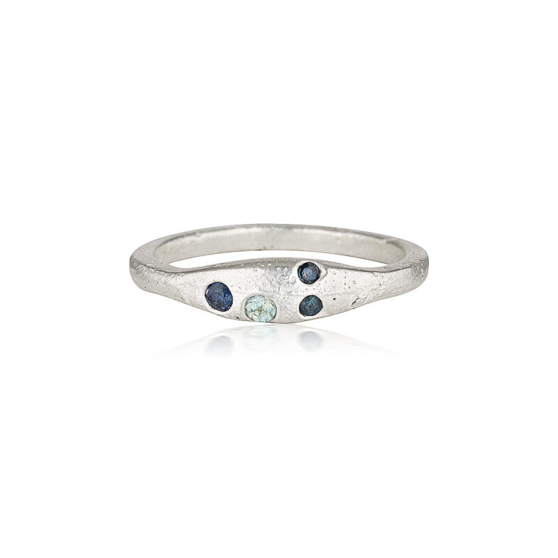 Recycled silver and teal sapphire gemstone ring, ethical jewellery handmade in Sydney.