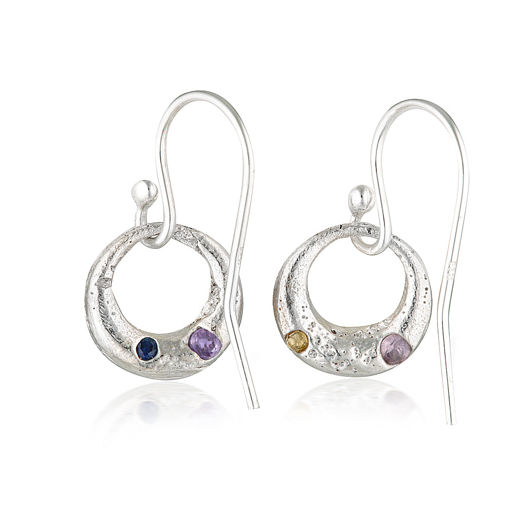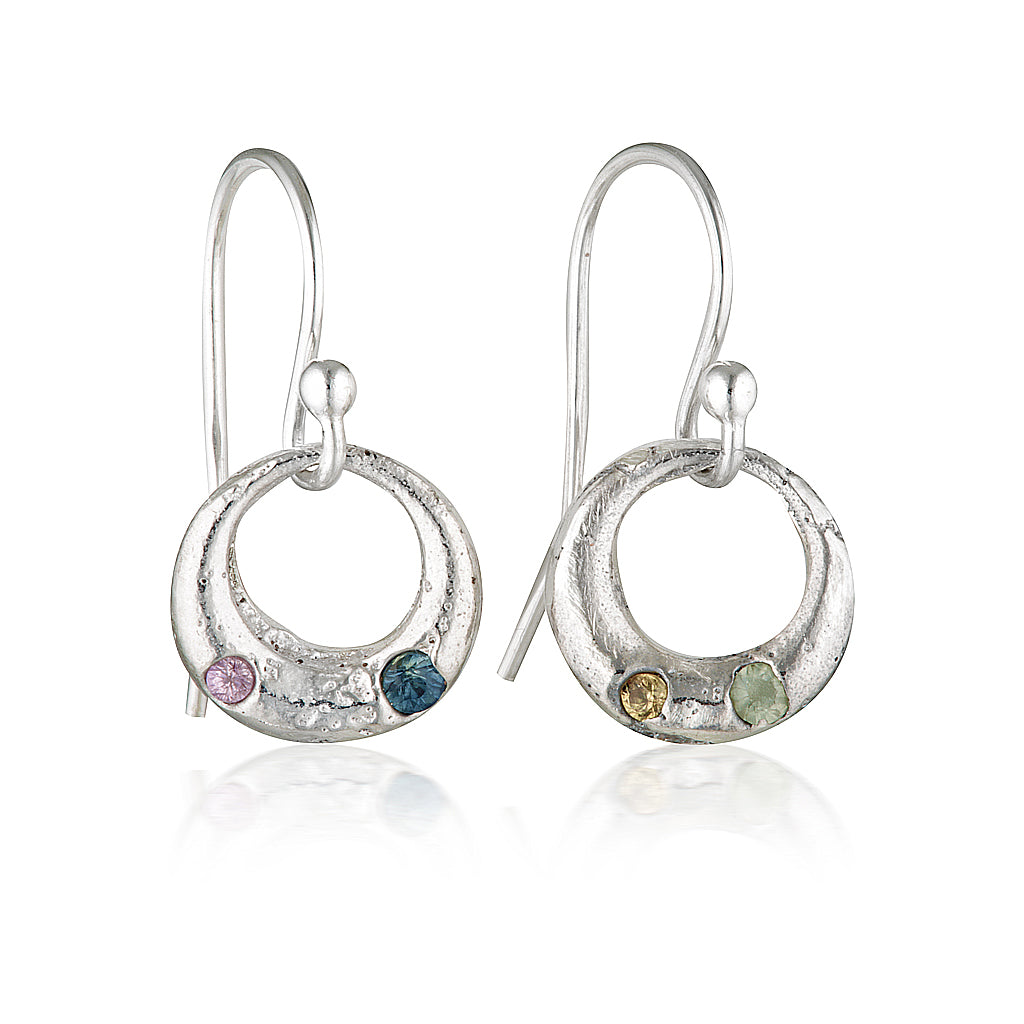 Recycled silver and mixed sapphire gemstone earrings, ethical jewellery handmade in Sydney.