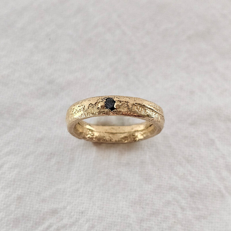 9K yellow gold & black diamond Epicene ring, 6mm width. Size AU U.