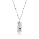 A larger version of our Small Tablet Necklace, this pendant has been handcrafted with recycled silver and contains three mixed coloured sapphire stones. The stone colours are chosen at random. If you would like a specific colour way, please leave a note at checkout.