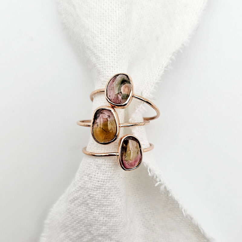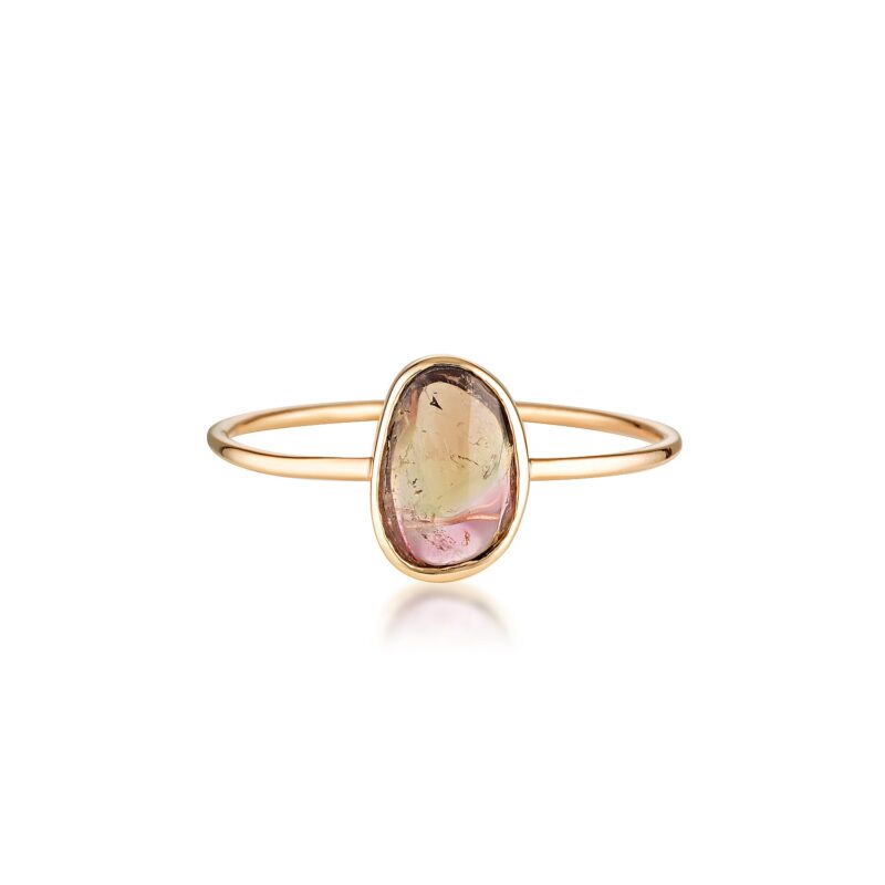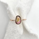 Part of our one-of-a-kind fine jewellery range, this watermelon tourmaline gemstone slice is set into 14k rose gold. One of a kind in colour and shape, this ring is designed to stack in a set, or to be worn on it’s own.