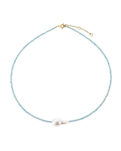 Aquamarine Faceted Beaded Pearl Necklace – Gold Plated
