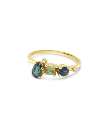 Australian Sapphires with Diamond Ring – 9ct Yellow Gold