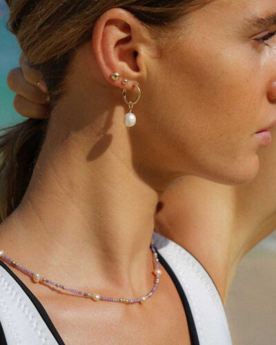 Committed to durability and ease, Angela creates ocean-safe jewellery you never have to take off. Pieces are made in sterling silver and durable gold metals such as 14k gold-filled (not plated), making them sweat-proof, fade-resistant, and skin-friendly.