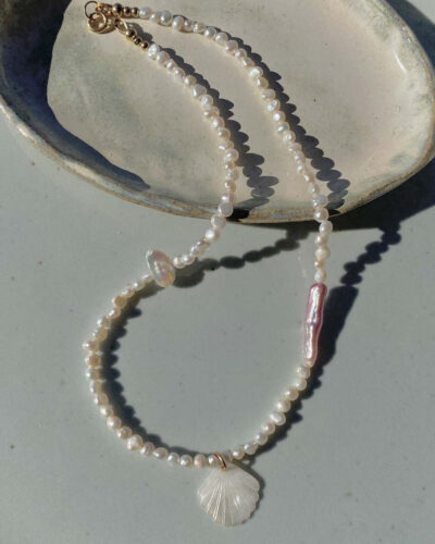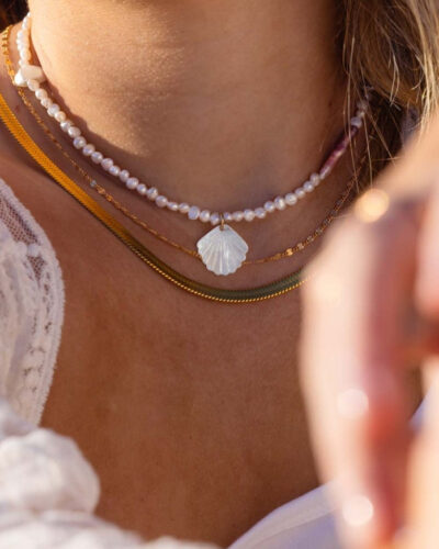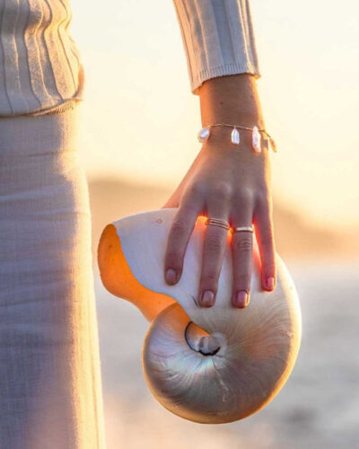 Inspired by the ocean, sun, sky, moon, and stars, Angela often works with pearls, gemstones, and sea glass. Her values — self-love, courage, and growth — inform every design, resulting in intentional, high-quality pieces made to help the wearer feel beautiful, step into their power, and light up from within.