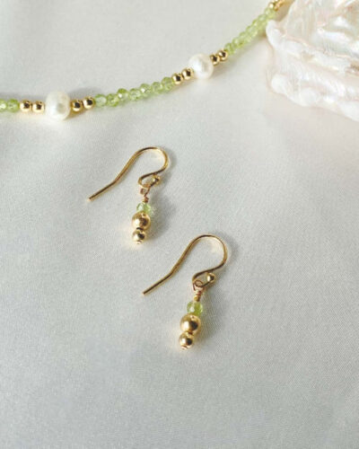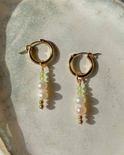 Peridot & Pearl Huggie Earrings – 14K Gold Filled