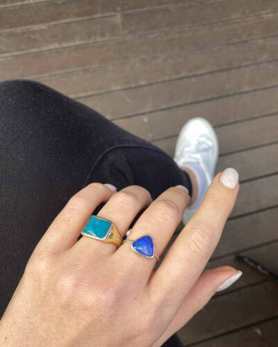 The brand began in 2018 after a chance silver-ring class in Ubud, Bali. What started as a moment of calm after a difficult breakup became a calling: at the bench, shaping metal quietened the noise and sparked a new craft. Her first design — a “courage” mantra ring — marked a commitment to move forward, and the collection has grown from that same intention.