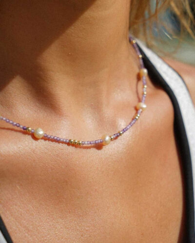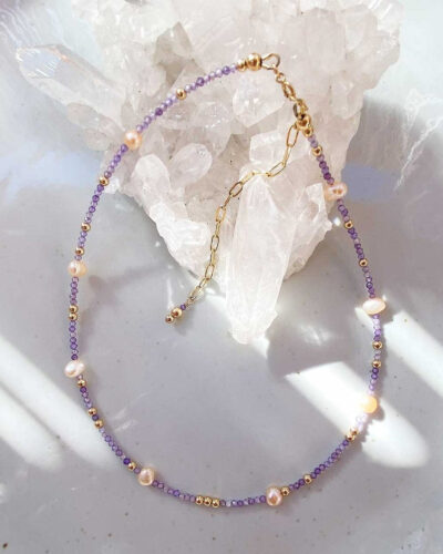 Rhea Pearl & Amethyst Necklace – 14K Gold Filled