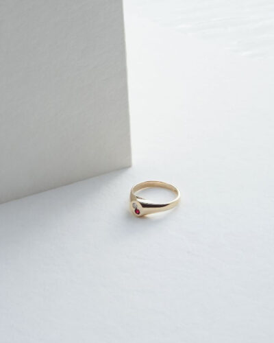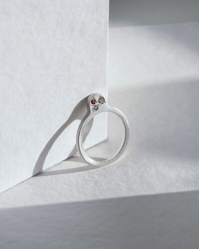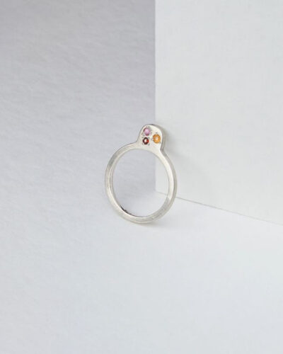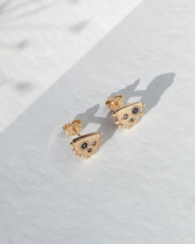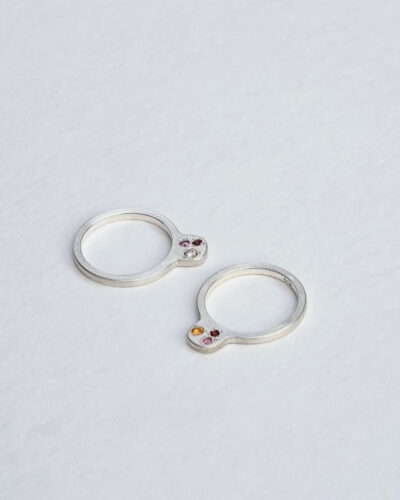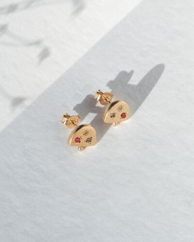 Working from her sunlit studio in the Dandenong Ranges, Melbourne/Naarm, Daria blends traditional gold and silversmithing with contemporary design. Her practice spans lost-wax casting and hand fabrication, pairing precious metals with enamel and carefully chosen gemstones. Simple, playful forms and considered bursts of colour keep the work effortlessly joyful, while each material is selected for its symbolism and protective properties. Many designs echo the power of three, a motif used for its protective significance.