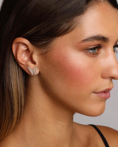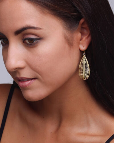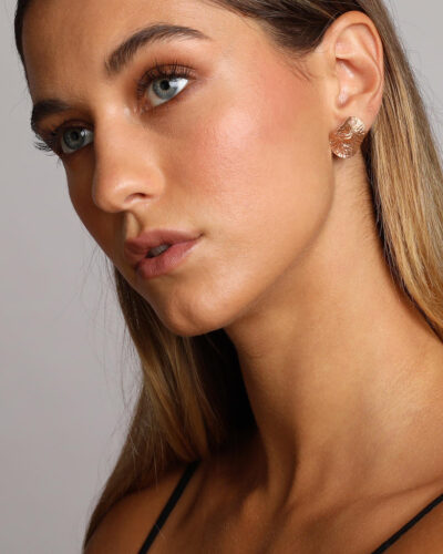 Textured Wavy Leaf Stud Earrings – Rose Gold Plated