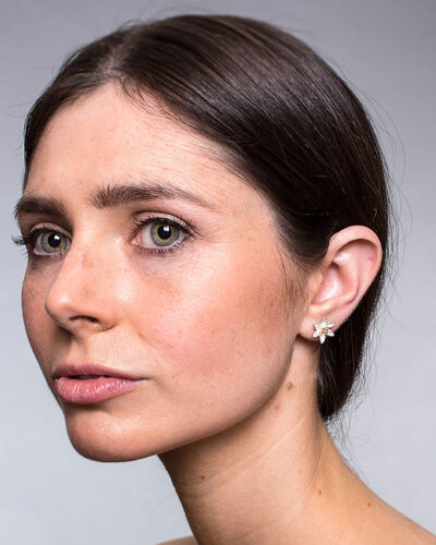 Lily Flower Stud Earrings – Silver & Yellow Gold