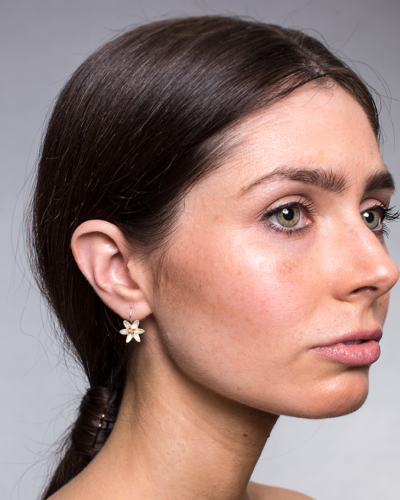 Small Lily Flower Earrings – Silver & Yellow Gold